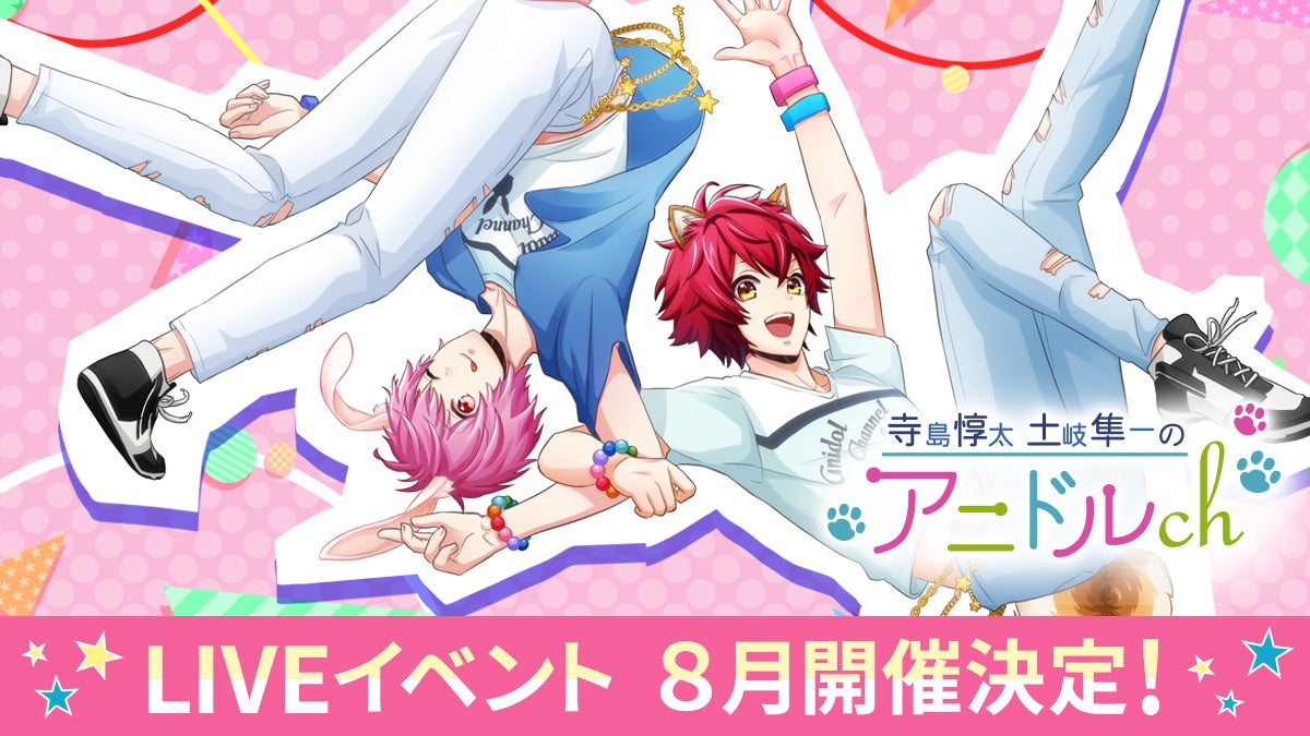 本イベントは公式ニコニコチャンネル「寺島惇太・土岐隼一のアニドルch」(以下「アニドルch」)でお馴染みの朝日悠希役・寺島惇太さん、土岐結人役・土岐隼一さんのほか、「アニドル」の声優キャスト陣にご出演いただきます。当日はアプリ内でおなじみの楽曲のライブはもちろん、ミニゲームや朗読パートなどのお楽しみ企画のほか、「アニドルch」の主題歌として制作された楽曲「Goodness Channel」のお披露目を予定しております。