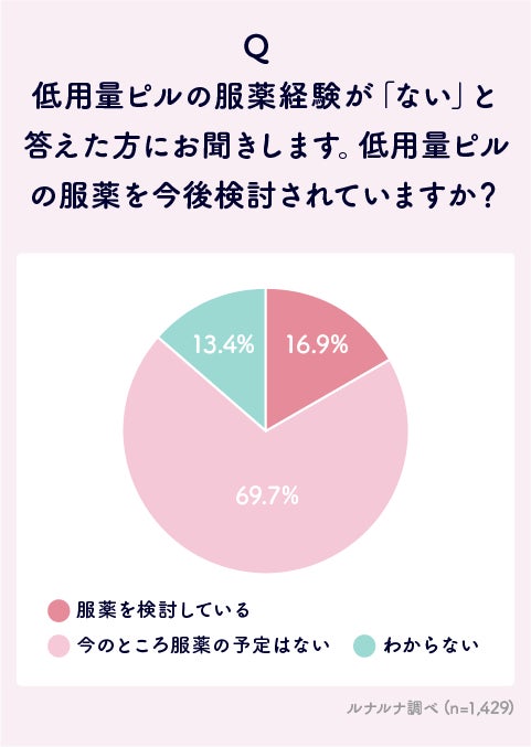 Q. 低用量ピルの服薬経験が「ない」と答えた方にお聞きします。低用量ピルの服薬を今後検討されていますか?