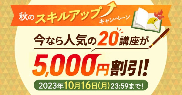 通信教育を手掛ける株式会社ユーキャン(東京都新宿区、代表取締役社長:品川 泰一)は、2023年9月1日(金)より、人気の20講座の受講料が5,000円割引となる「秋のスキルアップキャンペーン」を開始しました。
