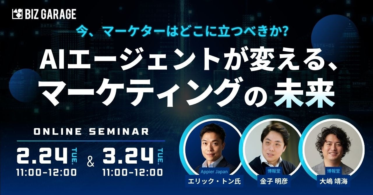 本セミナーでは、誰もが簡単に使えるAIの普及を目指すAppier Japanより、エリック・トン氏をお招きします。博報堂からはマーケティングシステムコンサルティング局の金子、大嶋が登壇。「AIエージェントはマーケティングの何を、どのように変えるのか」という本質的な問いについて議論します。