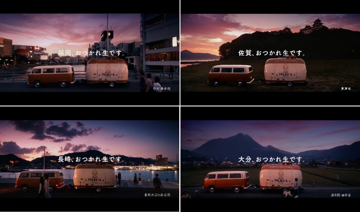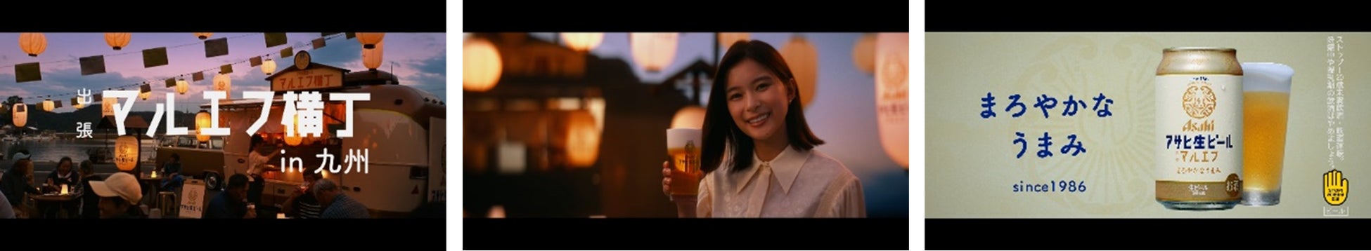 11月21日からは、九州エリア限定のTVCM「九州のみなさん、おつかれ生です」篇を放送します。CMは「福岡・佐賀・長崎・大分ver」と、「熊本・宮崎・鹿児島ver」の2つに分かれており、各県の名所とともに「マルエフカー」が映るシーンや、行く先々でお客さまが『アサヒ生ビール』を楽しむ様子を描いています。芳根さんがカメラ目線で「九州のみなさん、おつかれ生です」と語りかける姿を通じて“ぬくもりのある世界観”を演出しています。