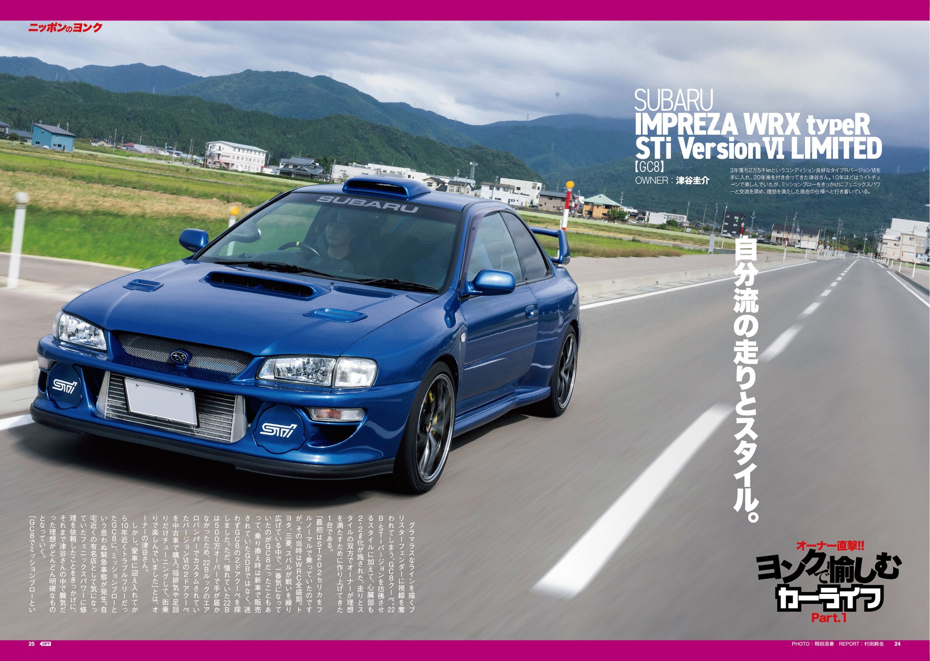 スポーツ4WDに対する只ならぬこだわりを持つオーナーを直撃。愛機を選んだ理由から、チューニング&カスタマイズの方向性と内容について語ってもらった。登場マシンはGC8、CN9A、E39A、VAB、ST185H、CT9A…と新旧バリエーションに富んだラインアップになっている。