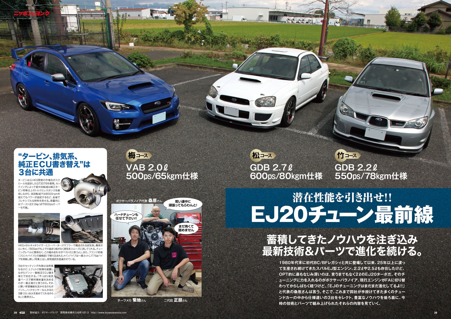 スバルのスポーツ4WDを語る上で欠かせないのが、1980年代末に登場してから25年以上に渡って生産され続けていたEJ20。主力ユニットはFAエンジン系に譲ったものの、チューニングシーンにおいてEJ20は進化し続けている。その最先端メニューをボクサーパラノイア・桑原さんに紹介してもらった。