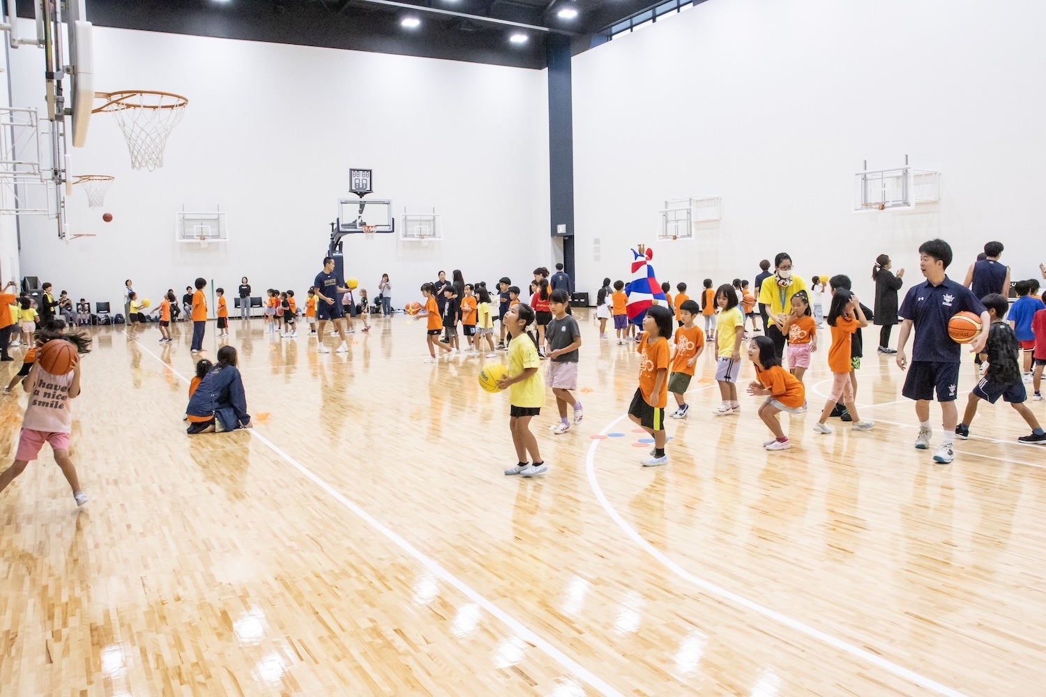 崎濱選手、平良選手は、バスケットボールを通じて子どもたちと直接ふれあい、シュート体験やミニゲームを行いました。会場には多くの子どもたちの笑顔があふれ、プロ選手との交流は、将来の夢を膨らませるきっかけとなりました。