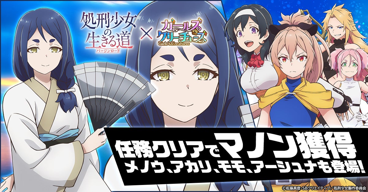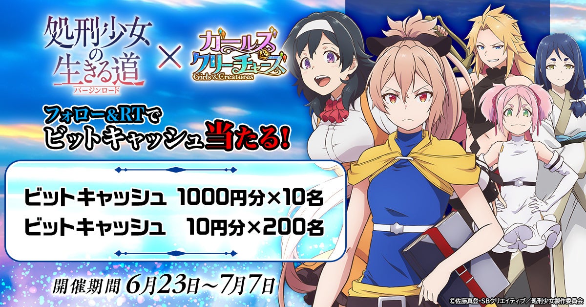 CTW株式会社は、ゲームサービスG123にて配信中のHTML5ゲーム『ガールズ&クリーチャーズ』において、現在放送中のアニメ『処刑少女の生きる道(バージンロード)』コラボイベントを開始したことをお知らせいたします。