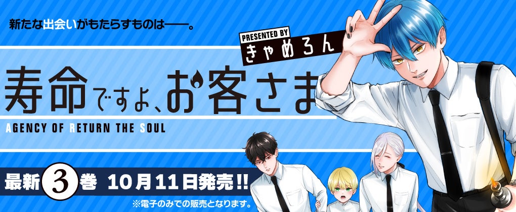 人の命が尽きる時に現れる3人組と死者の少年が織りなす、お死事ハートフルコメディ!『寿命ですよ、お客さま 3』電子書籍が本日発売!