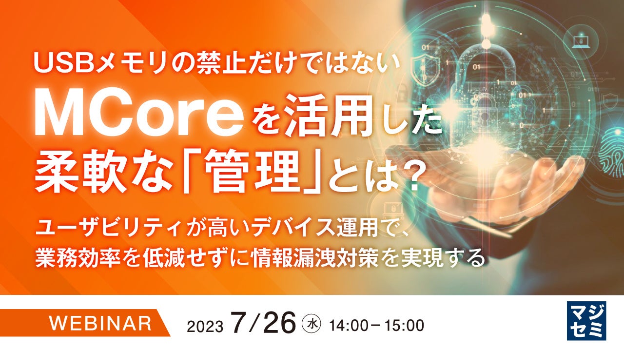 本ウェビナーでは、USBメモリの利用をただ禁止するだけでなく「管理」することで利用し続けることができる、MCoreのデバイス管理についてご紹介します。