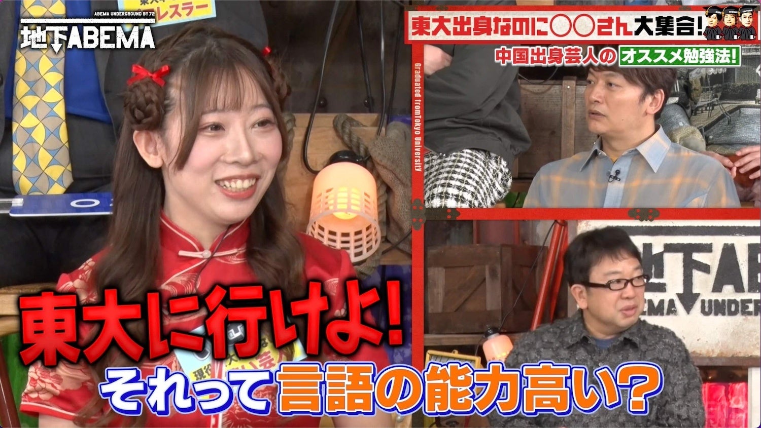 現役東大院生で中国出身の女性ピン芸人がたった1年で日本語をマスターした勉強法を暴露「『嵐にしやがれ』を1年分見たら…」暗記が得意?香取の特技を知った東大生が激ツッコミ|ななにー 地下ABEMA#63