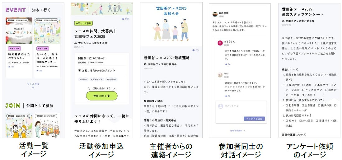 第1弾となる世田谷区では、「国際遊びの日」※をはじめ、「せたがやふるさと区民まつり」や「SANCHA HAVE A GOOD MARKET」などのイベント告知と運営サポートメンバーの募集、さらに地域コミュニティでつくりあげる「シェア実家」の活動紹介とボランティア募集などを開始し、今後も順次新たな活動の掲載と募集を進めていきます。また、活動終了後には、地域通貨であるせたがやPayとの連携や、さまざま主催者からのお礼も予定しています。 本実証実験を通して、参加者数や参加者同士のつながり、および地域への愛着意識の醸成など、定量・定性の両面から調査・検証し、来年4月からの本実施に向けたサービス価値の検証と向上に活かします。