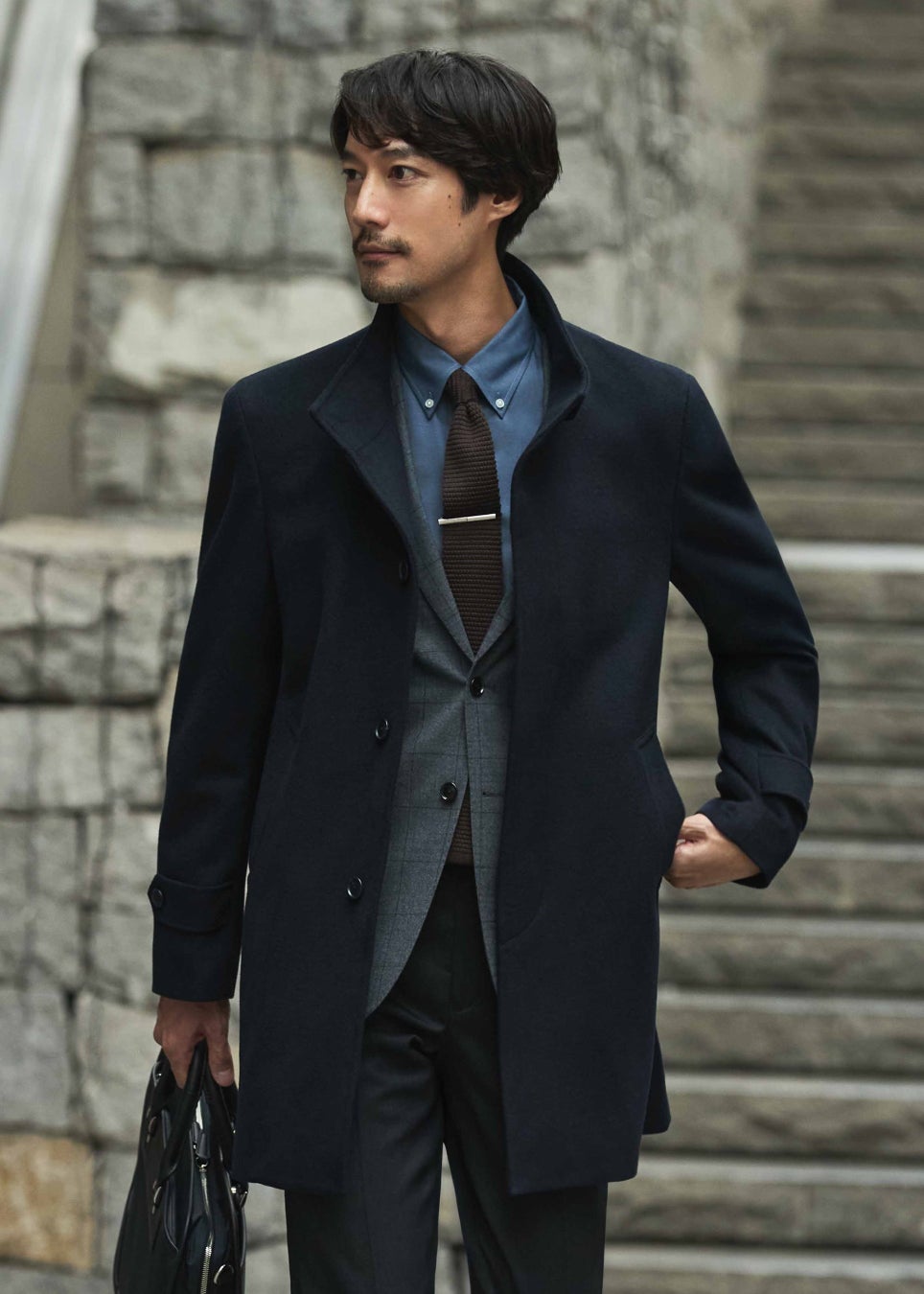 今季ORIHICAではウールコートを2型にて展開。ビジネスからビジカジまで幅広く活躍するスタンドカラーと、フォーマルな装いにもマッチするクラシカルな雰囲気のチェスターコートは、天然素材の風合いを生かした柔らかさとあたたかさが魅力です。内側には収納力のある多機能ポケットを備え、着心地と機能性を併せ持った1着です。
