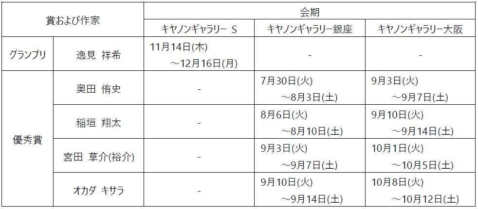 一般の方のお問い合わせ先:キヤノンギャラリー S (03-6719-9021)、キヤノンギャラリー銀座(03-3542-1860)、キヤノンギャラリー大阪(06-7739-2125)