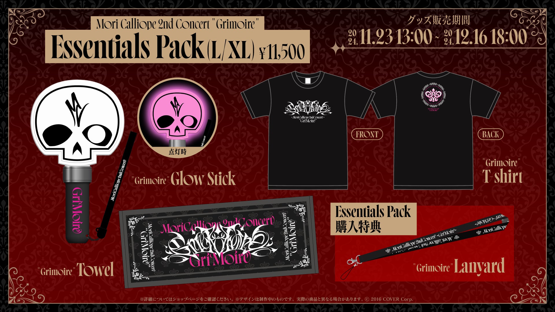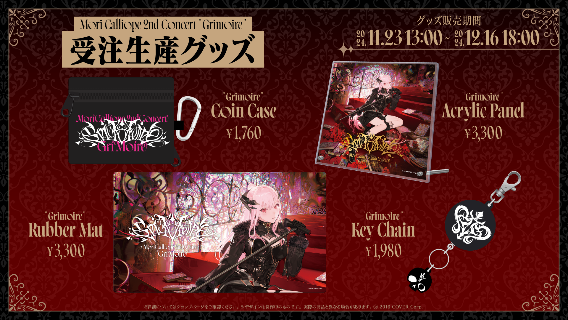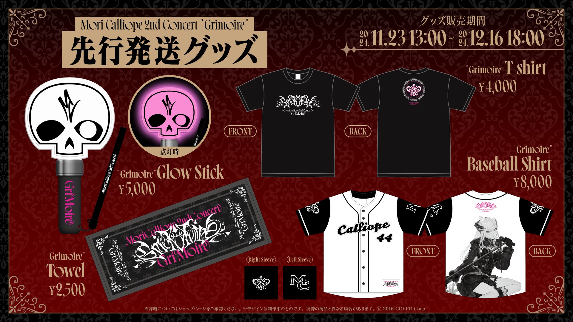 本公演開催に合わせ、本日11月23日よりMori Calliope 2nd Concert "Grimoire"ライブグッズを解禁いたしました。
