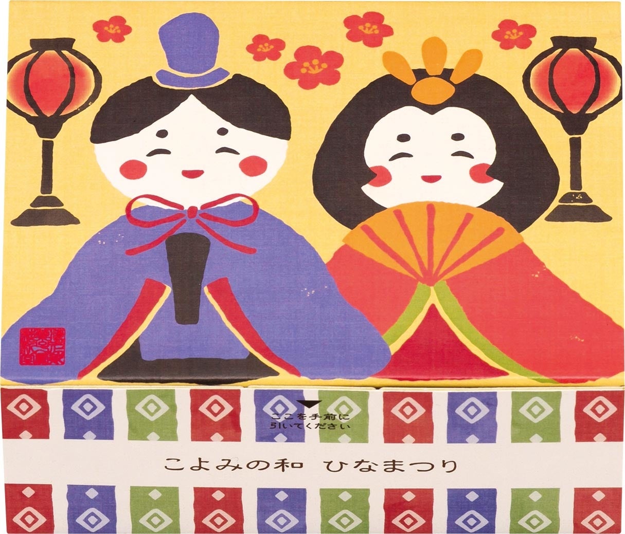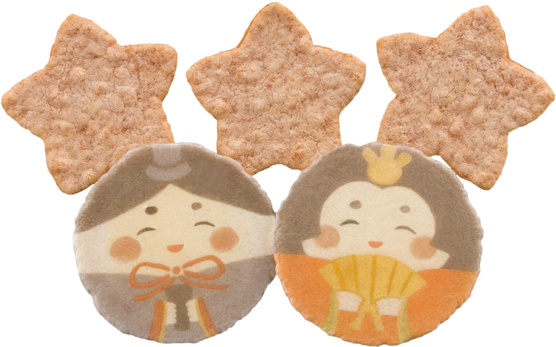 ひな人形の絵柄がプリントされたえびせんべい。