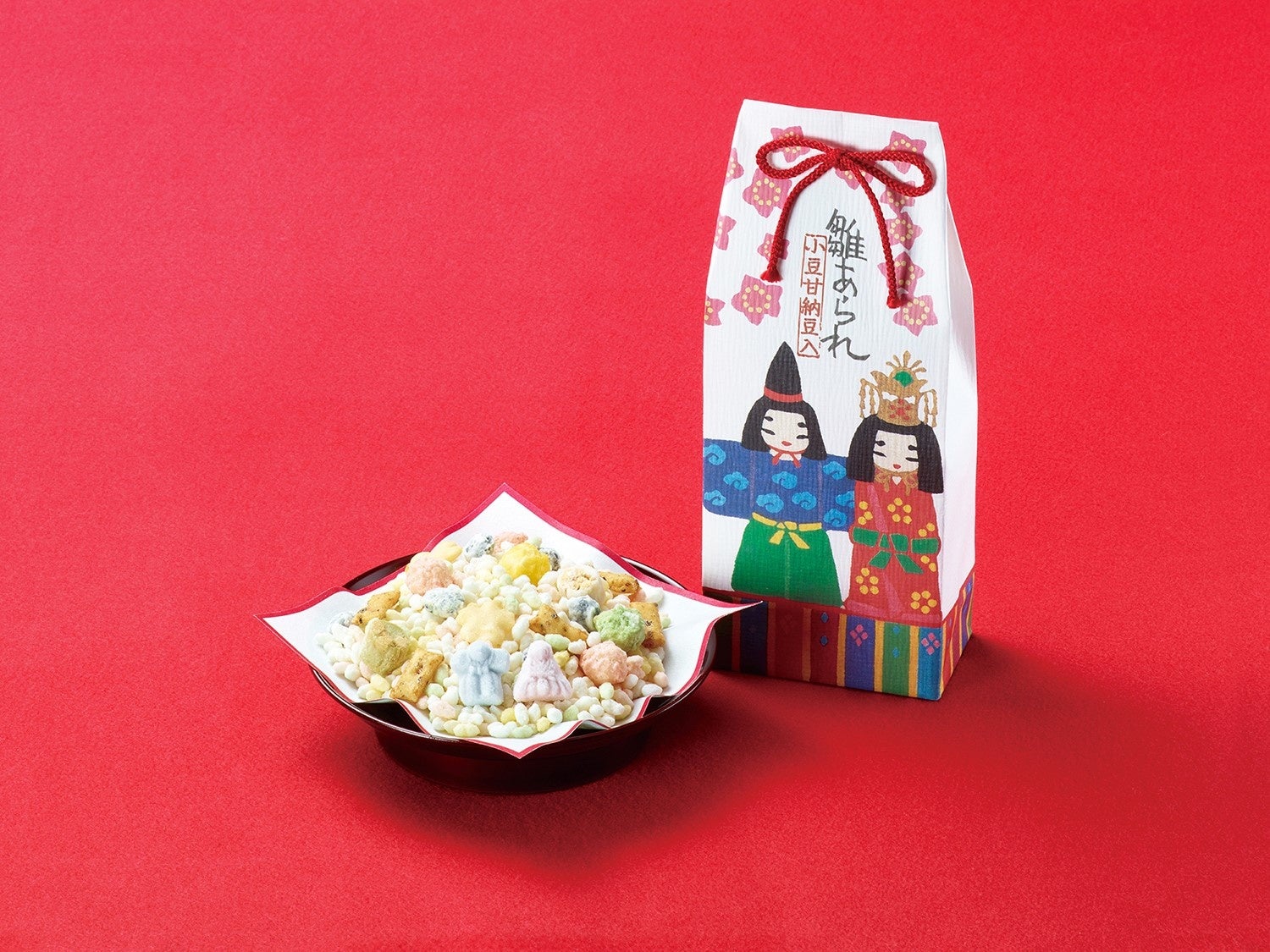 北海道産小豆の甘納豆が入った、おいしく楽しいひなあられです。