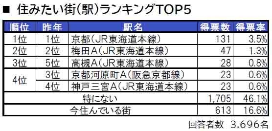 ■住みたい街(駅)トップは、5年連続で京都(JR東海道本線)