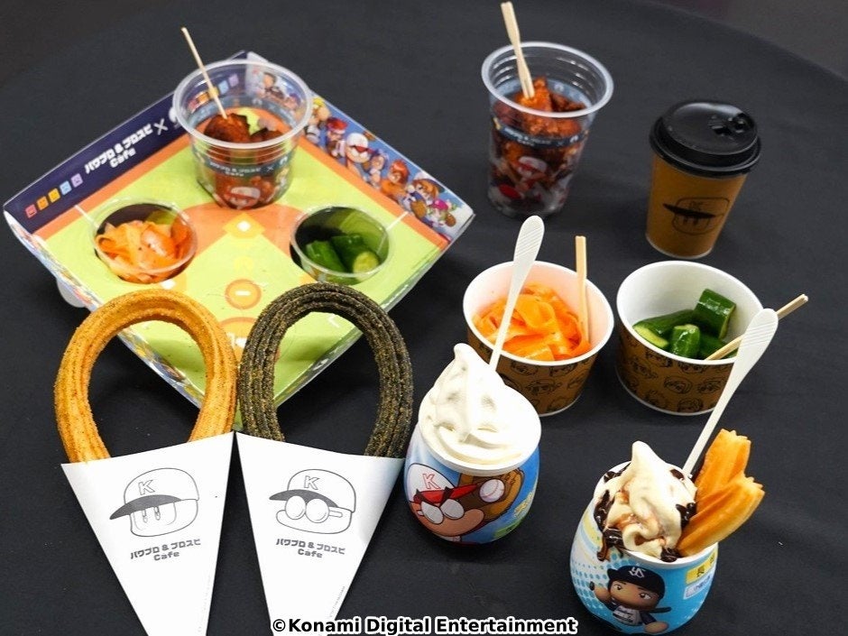 「パワプロ&プロスピcafé」は、東京都港区青山で人気のヘルシースイーツ専門店「青山すこやか本舗」が運営し、「パワプロくんの米粉チュロス」や「矢部でやんすソフトクリーム」、「長岡秀樹のパワフルチュロスサンデー」などスイーツを中心とした商品が販売されます。場所は、 内野3塁側12GATE。