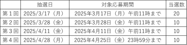 ※以前の抽選で落選となった場合でも、後に行われる抽選の対象となります。
