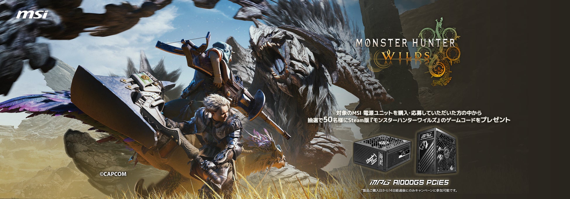 内容:対象のMSI 電源ユニットを購入・応募すると先着でSteam版『モンスターハンターワイルズ』のゲームコードがもらえる