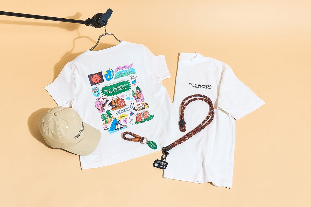 フェスの雰囲気を盛り上げるオフィシャルグッズは、イラストレーターnorahiが描き下ろしたデザインをTシャツ・帽子にあしらい、より“TINY GARDEN FESTIVALの雰囲気を感じてもらえるアイテムになっています。