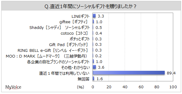 【ギフトに関する調査】直近1年間にソーシャルギフトを贈った人は9%。昨年1年間にギフトを贈った人は7割弱、過去調査と比べて減少傾向