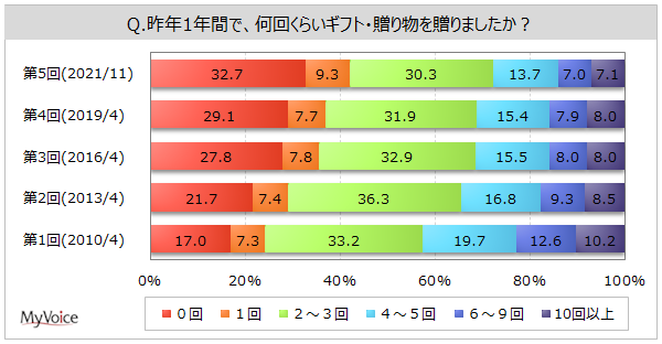 マイボイスコム株式会社(東京都千代田区、代表取締役社長:高井和久)は、インターネット調査を中心に提供している伊藤忠グループのリサーチ会社です。この度、5回目となる『ギフト』に関するインターネット調査を2021年11月1日~5日に実施し、10,167件の回答を集めました。調査結果をお知らせします。