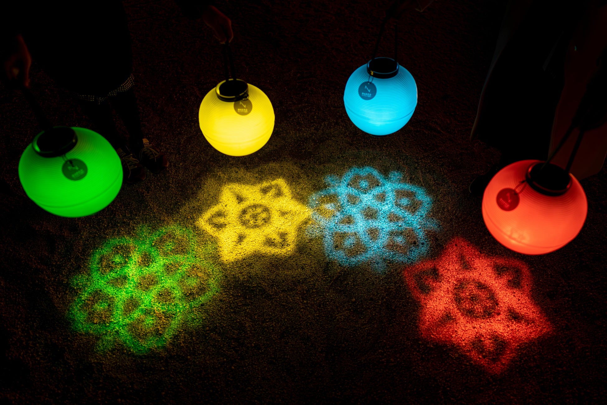 手にした光の提灯を灯し、夜の神苑を巡る体験。あなたの光が四神を呼び覚まします。提灯は四神にちなんだ4色展開。