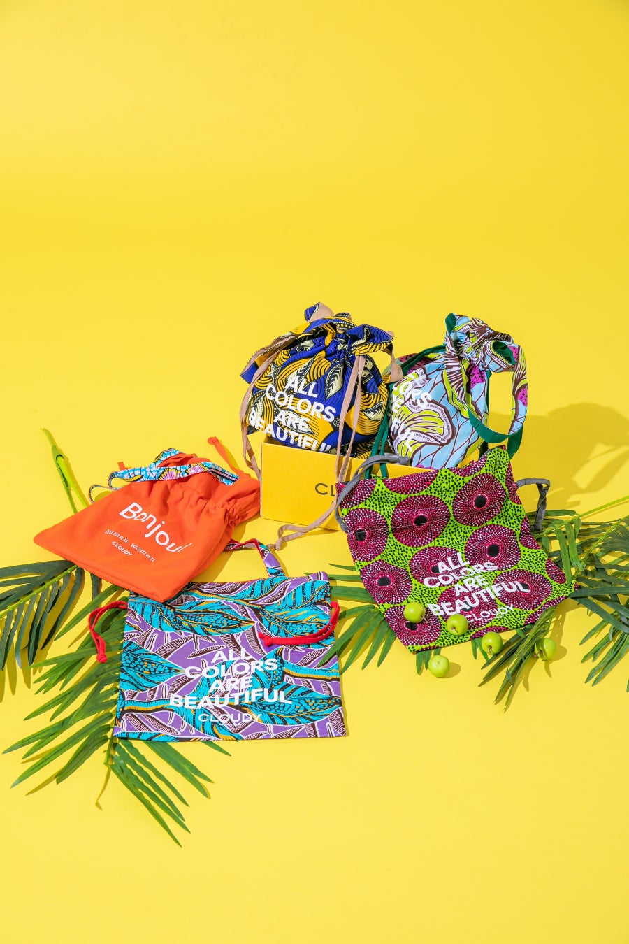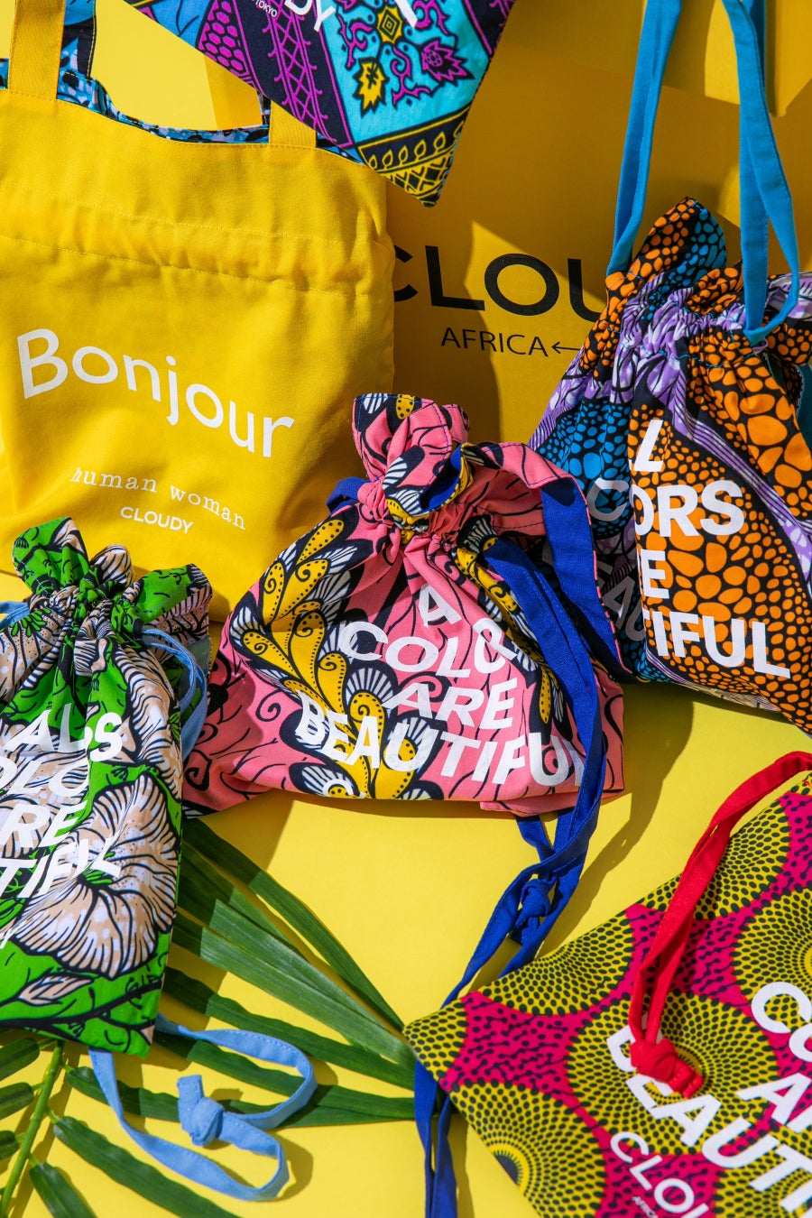 彩とファッションでアフリカの雇用創出をお客様と一緒に生み出す。アフリカ・ガーナで生産した雑貨やCLOUDYのクリエイターが描いたテキスタイルで作ったアパレルを展開。