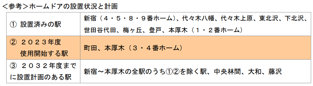 今後も、鉄道駅バリアフリー料金制度を活用し、新宿駅から本厚木駅までの全駅と中央林間駅、大和駅、藤沢駅へ設置を進めます。