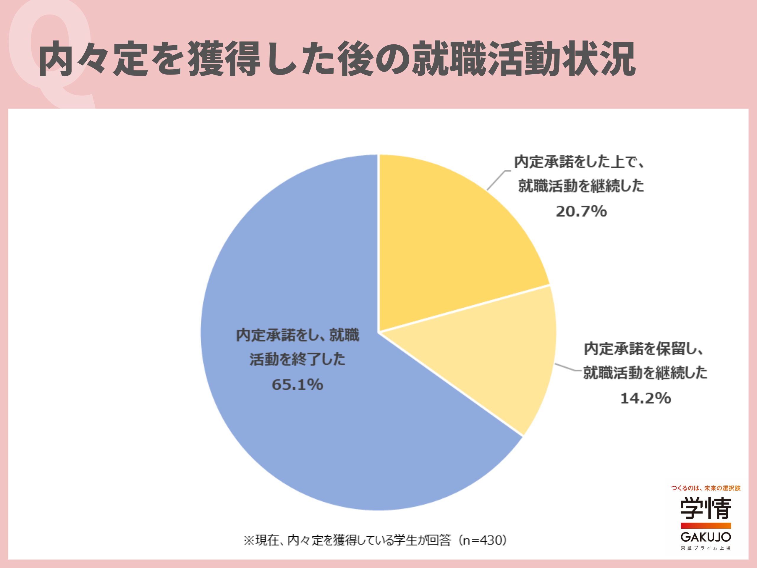 (2)内々定を獲得した後に、「就職活動を終了」した学生が65.1%、「就職活動を継続」した学生が34.9%