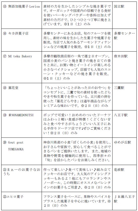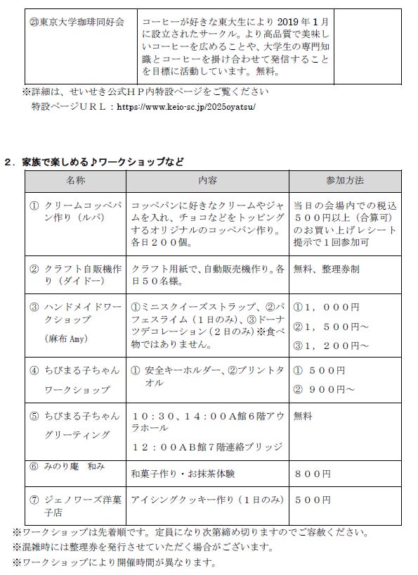 本イベントは、せいせきA館6階アウラホールに、地元聖蹟桜ヶ丘をはじめ京王線沿線や各地から、冬にぴったりのあま~いおやつ、厳選素材のこだわりおやつ、お小遣いで買えるお子様おやつ等、「たのしいおやつ」を集めマルシェを開催。また、ファミリーで楽しめるおやつにちなんだワークショップやイベントを行います。2023年に続き2回目の開催となります。