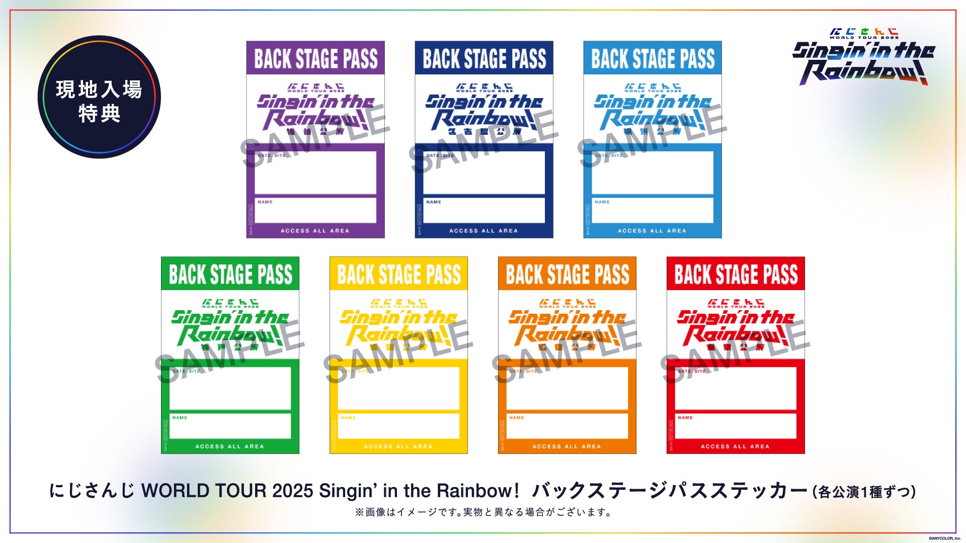 現地入場特典として「にじさんじ WORLD TOUR 2025 Singin’ in the Rainbow!バックステージパスステッカー(各公演1種ずつ)」をプレゼント!