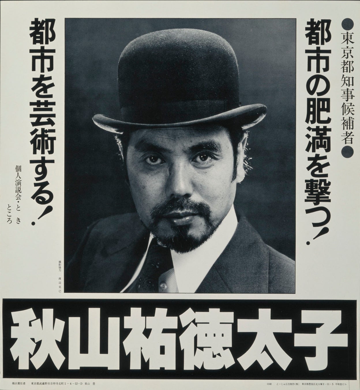 近代ヨーロッパのヒューマニズムを批判・攻撃し、挑発的な作品によって「治療」しようと1960 年代から街中や展示会場でのハプニングを繰り広げた工藤哲巳の作品や、1970 年代に2度にわたって東京都知事選に出馬した秋山祐徳太子のユーモアあふれる選挙ポスターなど、当時の熱気を感じさせる作品を紹介します。