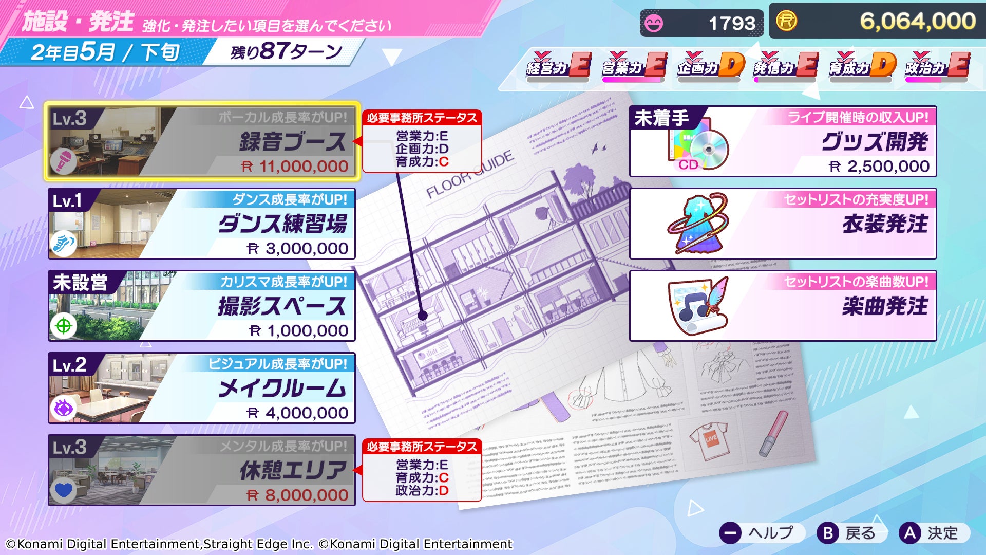 ゲーム本編では、アイドルの育成を行うだけでなく事務所経営での資金繰りもゲームクリアの要に。