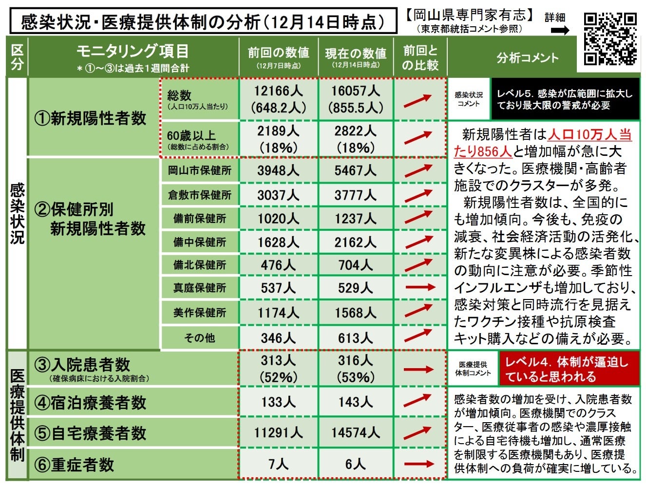 【岡山大学】岡山県内の感染状況・医療提供体制の分析について(2022年12月14日時点)