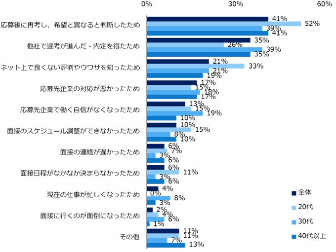 面接辞退理由、トップ3は「応募後の再考」「他社での内定」「ネット上での評判」。