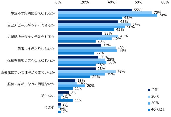 【図4】面接について不安に思うことを教えてください。(年代別/複数回答可)