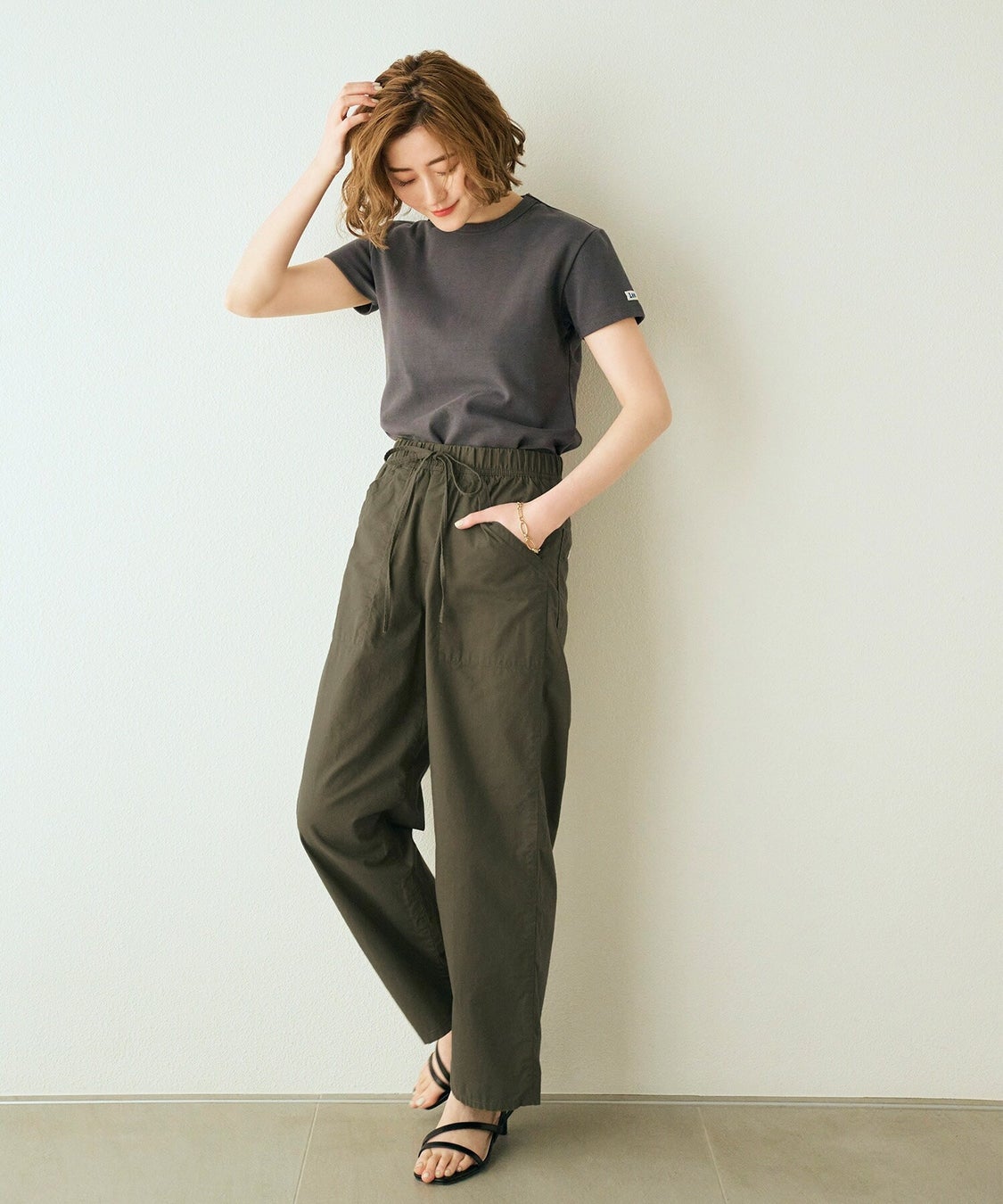 きれいめなニットやTシャツに足元にはヌーディなサンダルなど、女性らしいアイテムと合わせた品のよいスタイリングがおすすめです。