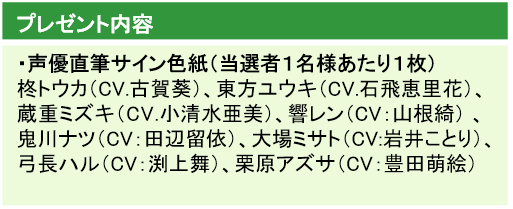 声優直筆サイン色紙いずれか1枚をプレゼントいたします。