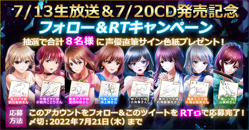 - 7/13生放送& 7/20CD発売記念 フォロー&RTキャンペーン