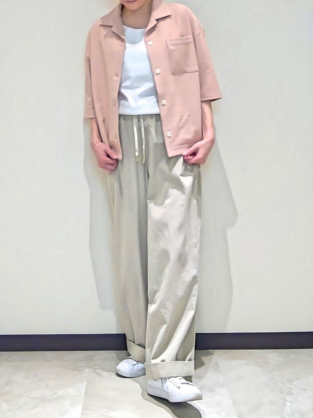 【6月】ボウリングシャツをラフに羽織って軽やかに。コンパクトな丈感で、ワイドパンツともバランス良くマッチします。