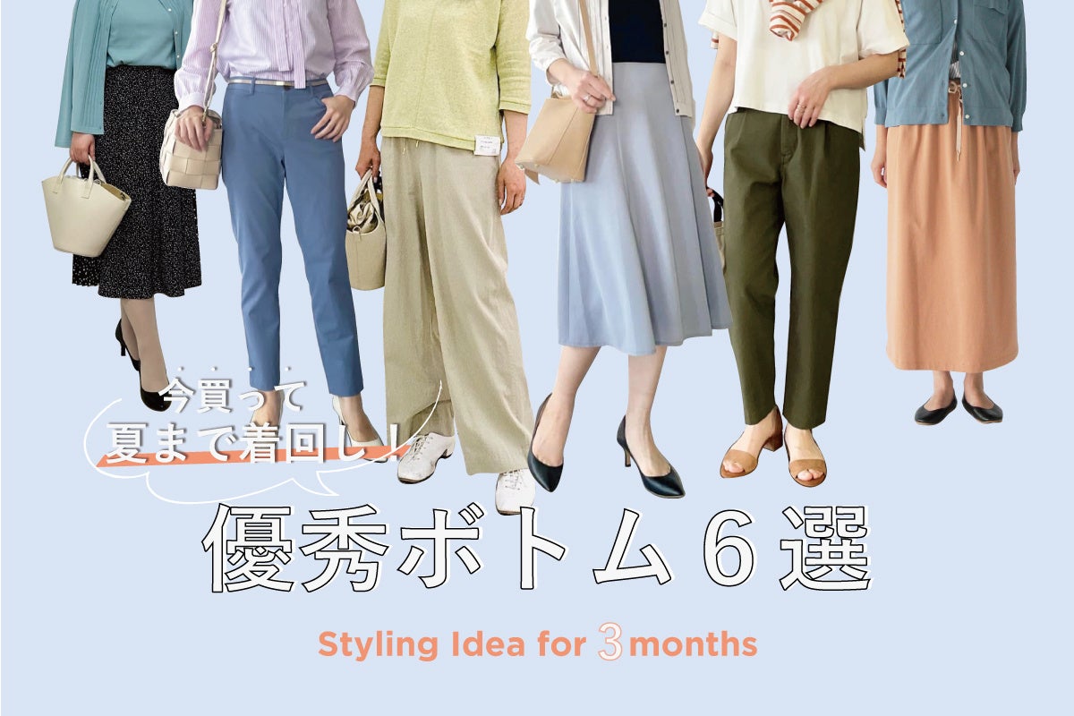 厳しい寒さが和らぎ、軽やかにおしゃれを楽しみたくなる季節。ボトムを新調するなら、着回し力を重視するのがおすすめです。そこで、今回は夏まで穿けるボトム6型の着回しスタイルを4月、5月、6月の3カ月に渡ってご紹介!季節の移り変わりと共に異なる表情を見せる着こなしに注目です。▽特集ページはこちらから