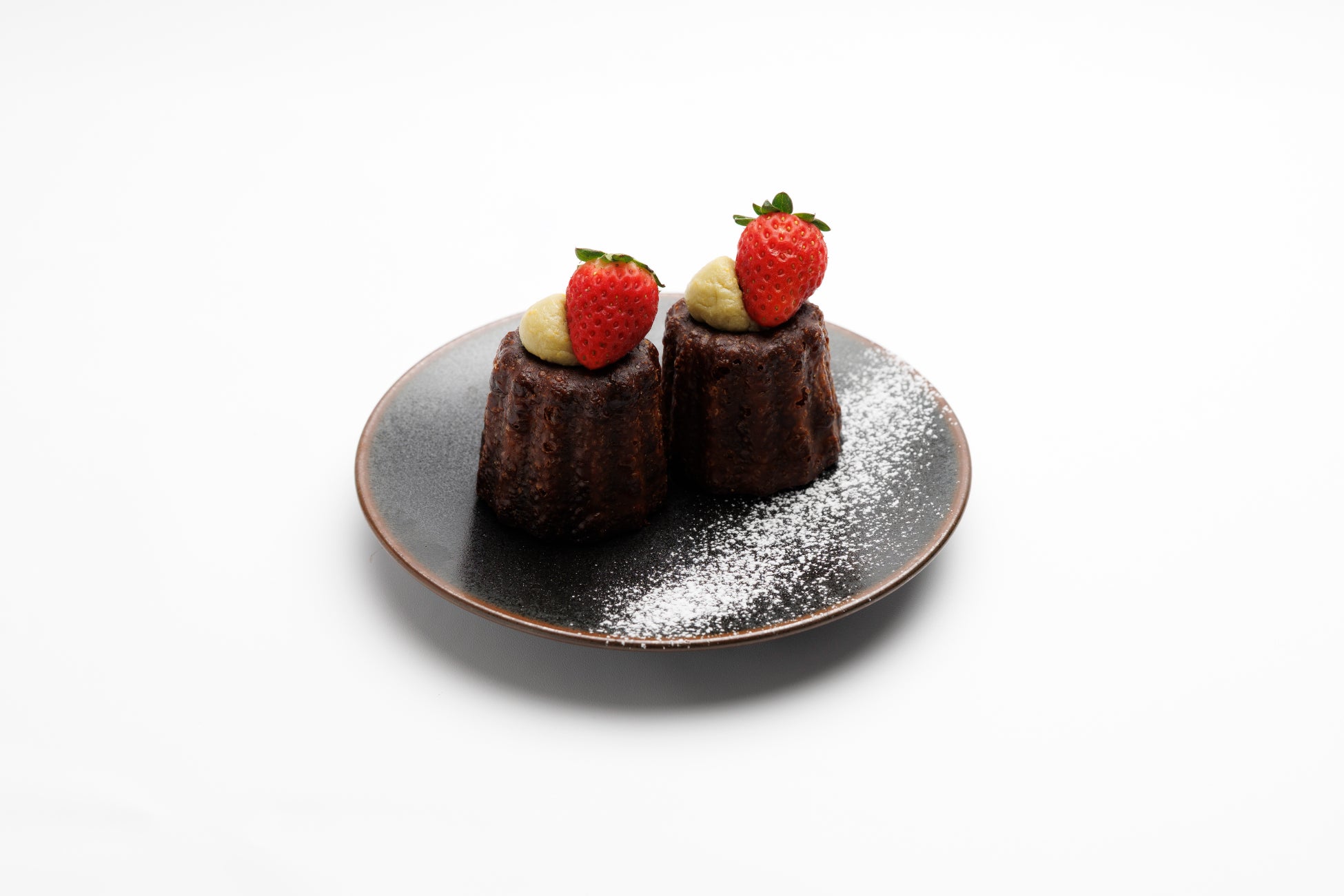 外はカリッと、中はもっちりとしたカヌレに、新鮮なイチゴとクリーミーなピスタチオを贅沢にトッピング。冬の彩りを映したケーキ仕立てのカヌレは、視覚と味覚の両方で楽しめます。