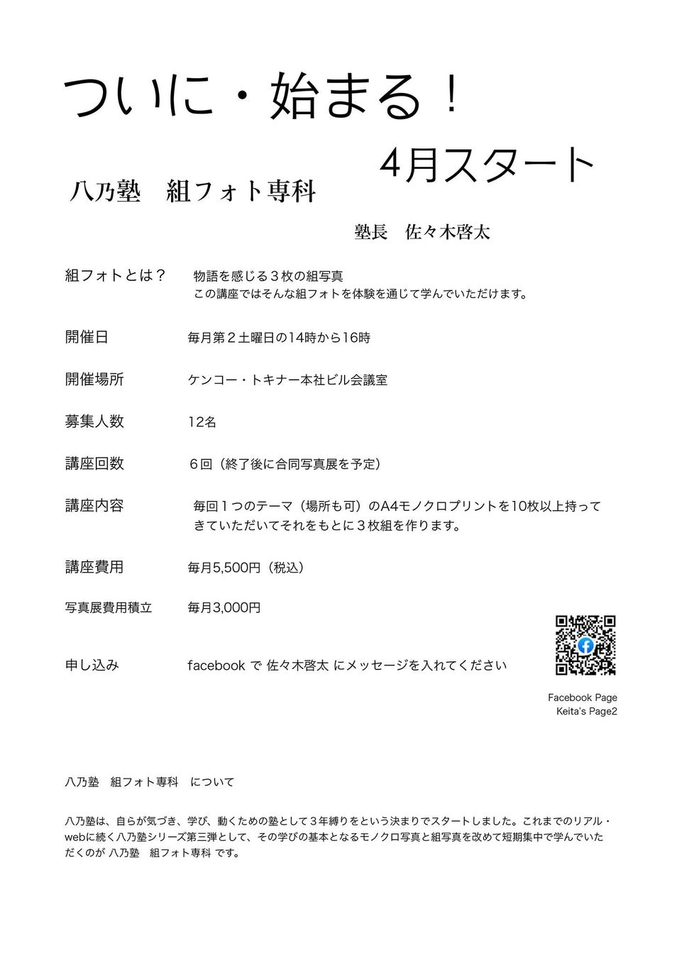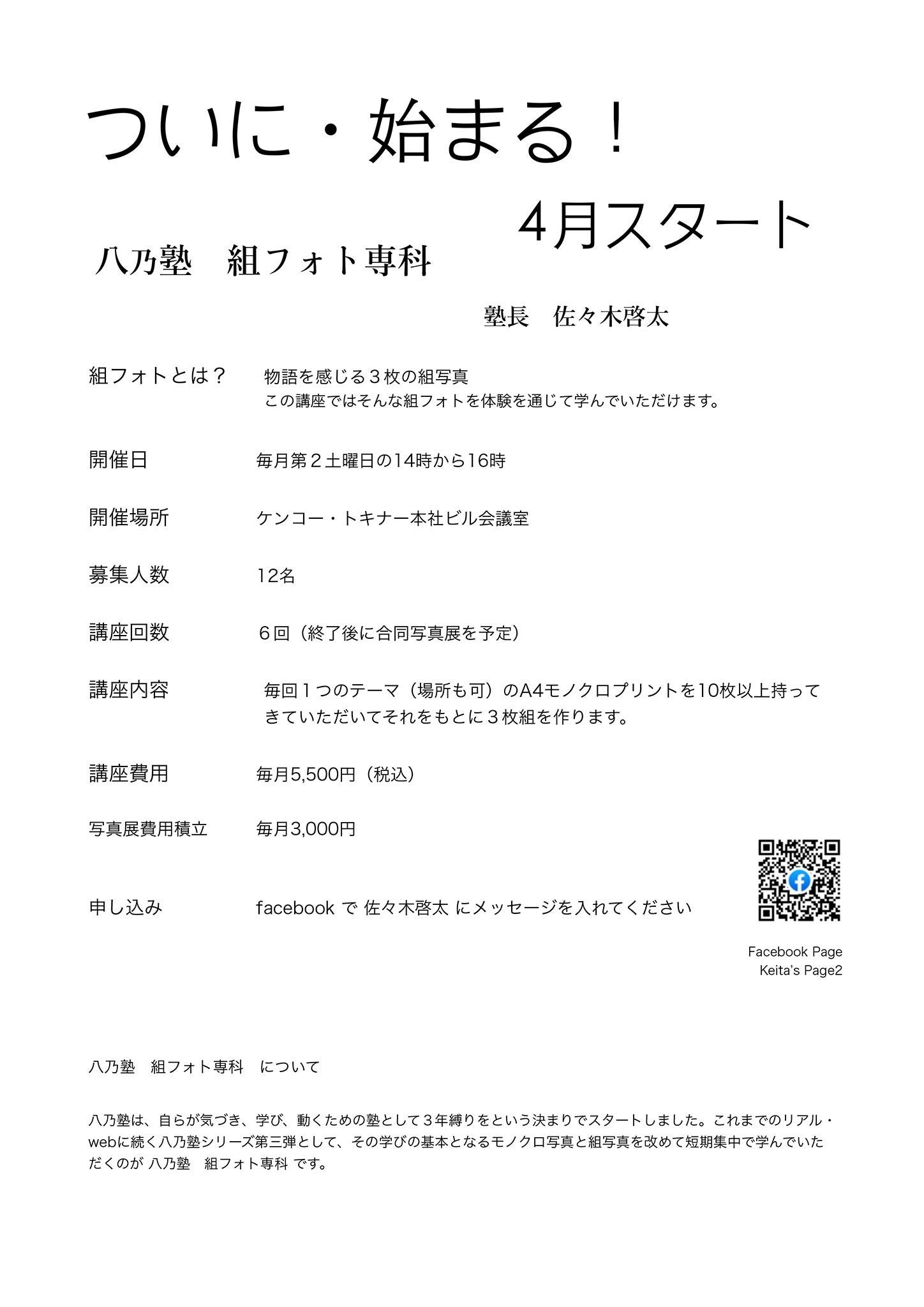 4月9日スタート「八乃塾 組フォト専科」(全6回シリーズ・佐々木啓太先生)