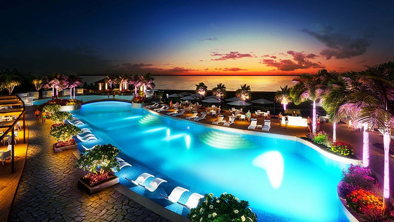 やんばるの森をイメージしたロビーエリアには、クラブラウンジを新設県内最大級のガーデンプールは、温水プールを備え、夜も魅力的な空間へ