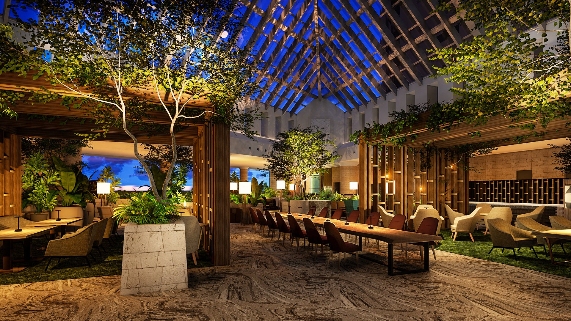 今回の改装により、プールエリアにはデッキエリアをはじめ、ラウンジャーを配した浅瀬エリアやカバナを新設。ロビーエリアは「やんばる」の森を思わせる緑溢れる空間へとリニューアルします。グランドオープン当日にプール開きをするプールエリアでは、新たにナイトプールを楽しむことができるようになり、日中の強い日差しを避けてプールを満喫したり、夕食後の時間をプールサイドで夜風を感じながら過ごすことができたりするなど、ホテルに新たな魅力が加わります。また、ロビーエリアにはアメニティを自由に選べる「アメニティベース」や「クラブルーム」宿泊者専用の「クラブラウンジ」を新設し、一日を通してどの時間帯においてもゆったりとした贅沢な時間をお過ごしいただける空間となります。さらに、Buffet & Grill QWACHI(クワッチー)の朝食をリニューアル、沖縄の地元食材を使ったご当地メニューをはじめ、素材の旨味や楽しさにこだわった料理を取り揃えました。