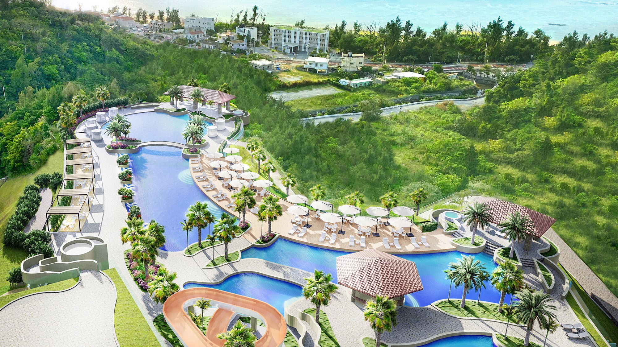 沖縄県内最大級のガーデンプールは、6つのプールとキッズプール、ウォータースライダー、サウナなどを有し、プールサイドにはカバナや見晴らしの良いデッキエリア、ラウンジャーを配した浅瀬エリアを新設、ビロウヤシやプルメリアなどの植栽をふんだんに配置しました。また、プール周りを回遊できる遊歩道も整備し、海や森を眺めながら散策が楽しめます。デッキエリアではホテルの様々なイベントを開催するほか、お客様のプライベートパーティなどにもご利用いただけます。プールエリアのライトアップを充実させ、また2つの温水プールにより、ナイトタイムやオフシーズンでも充実したリゾートステイをお過ごしいただけます。なお、3月19日のグランドオープン当日にプール開きとなり、2022年の沖縄の夏が始まります。