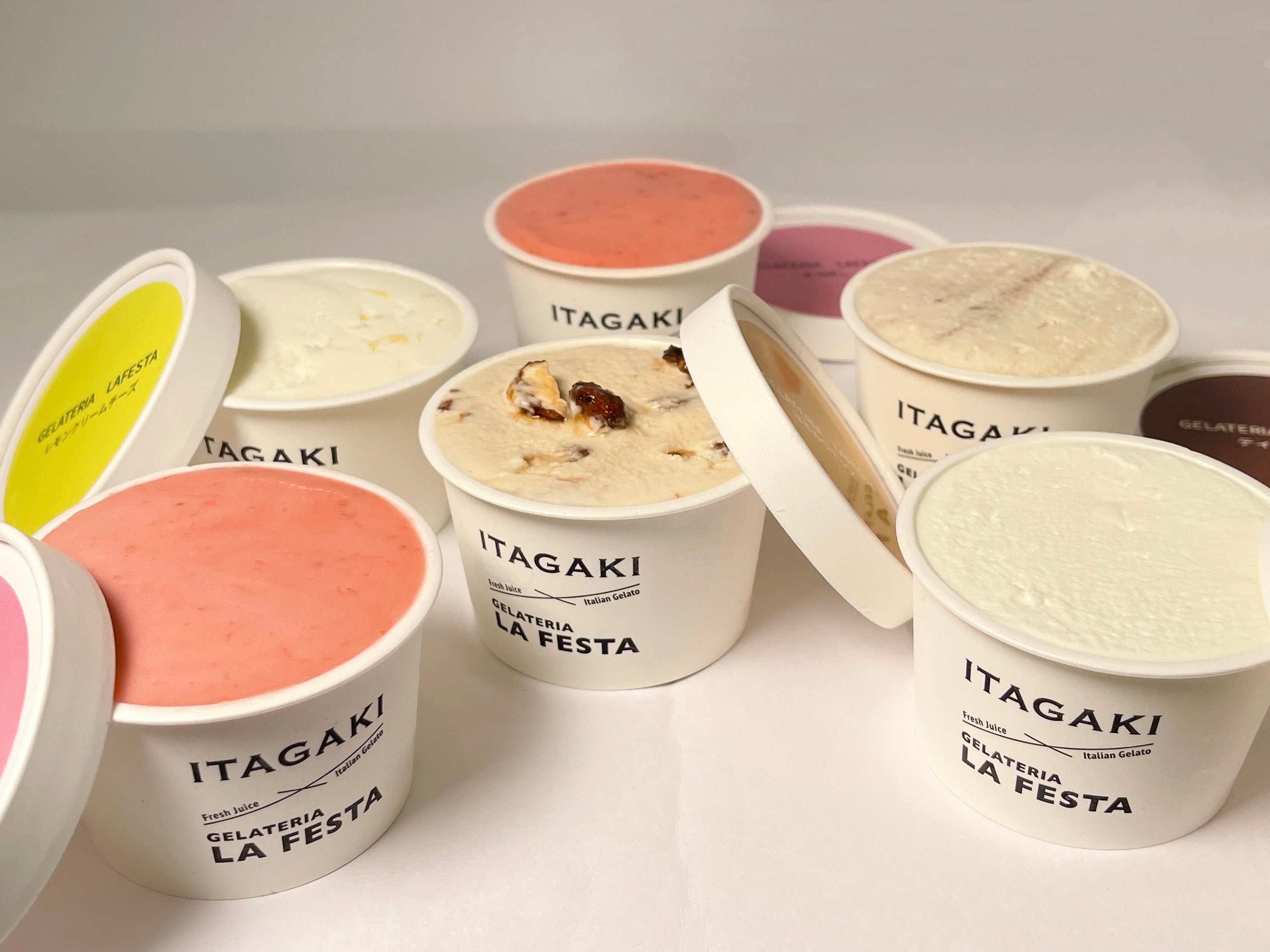 GM7は2017年7月にイタリアンジェラート専門店『GELATERIA LA FESTA(ジェラテリア ラ フェスタ)』を丸森町にオープン。2019年7月からいたがきと連携し、いたがきが厳選した国内外の高級果物を使用した、濃厚で素材の味を楽しめるジェラートを三井アウトレットパーク仙台港の「ITAGAKI」店内で販売しています。