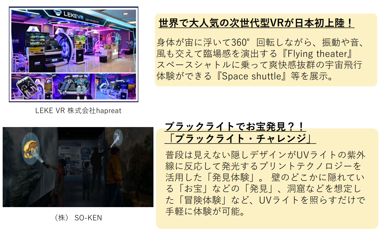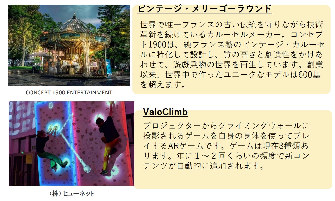 最新のアトラクションや遊具、アミューズメント機器の一部をご紹介!