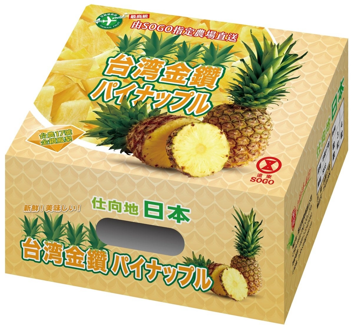 西武・そごうの公式ショッピングサイト「e.デパート」では、台湾最高級の「金鑽(ゴールドダイヤモンド)パイナップル」の受注販売を実施いたします。そごう・西武がパートナーシップを組み、現地企業が運営する遠東SOGOとのタイアップ企画となります。このパイナップルは厳格な品質管理のもと、SOGO特約農園から直送するもので、食べごろの新鮮なものを空輸便にてお届けいたします。海外への旅行が難しいなか、通常取り扱いのない台湾のパイナップルを販売することで、お客様のニーズにお応えいたします。