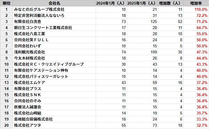 ・2024年1月時点と2025年1月時点の従業員数を比較